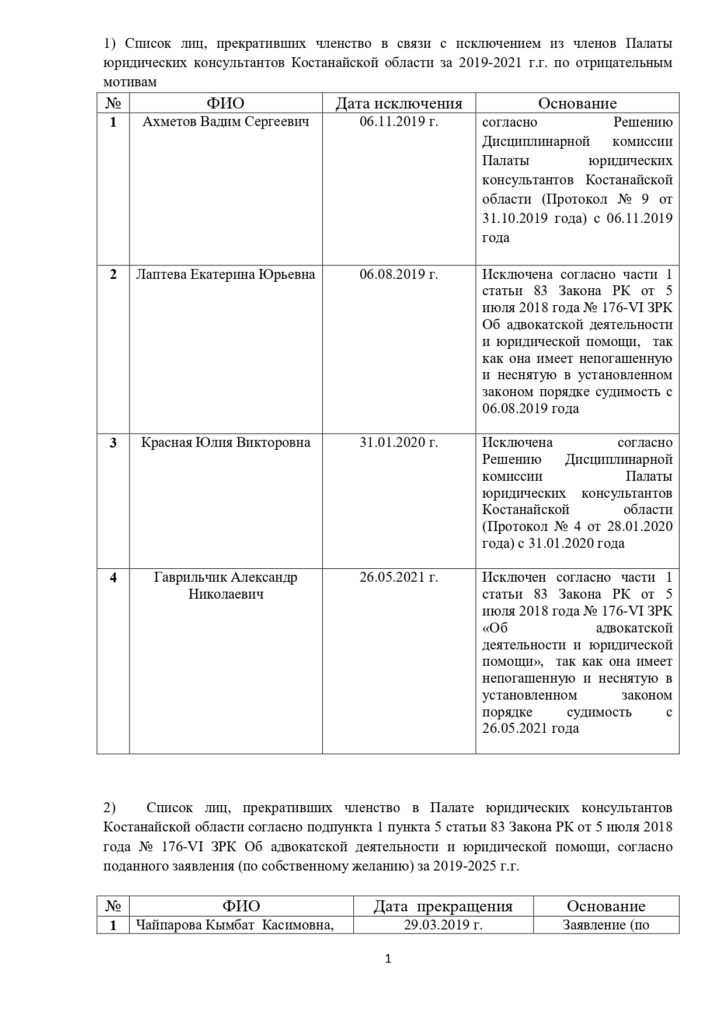 Прекратившие членство